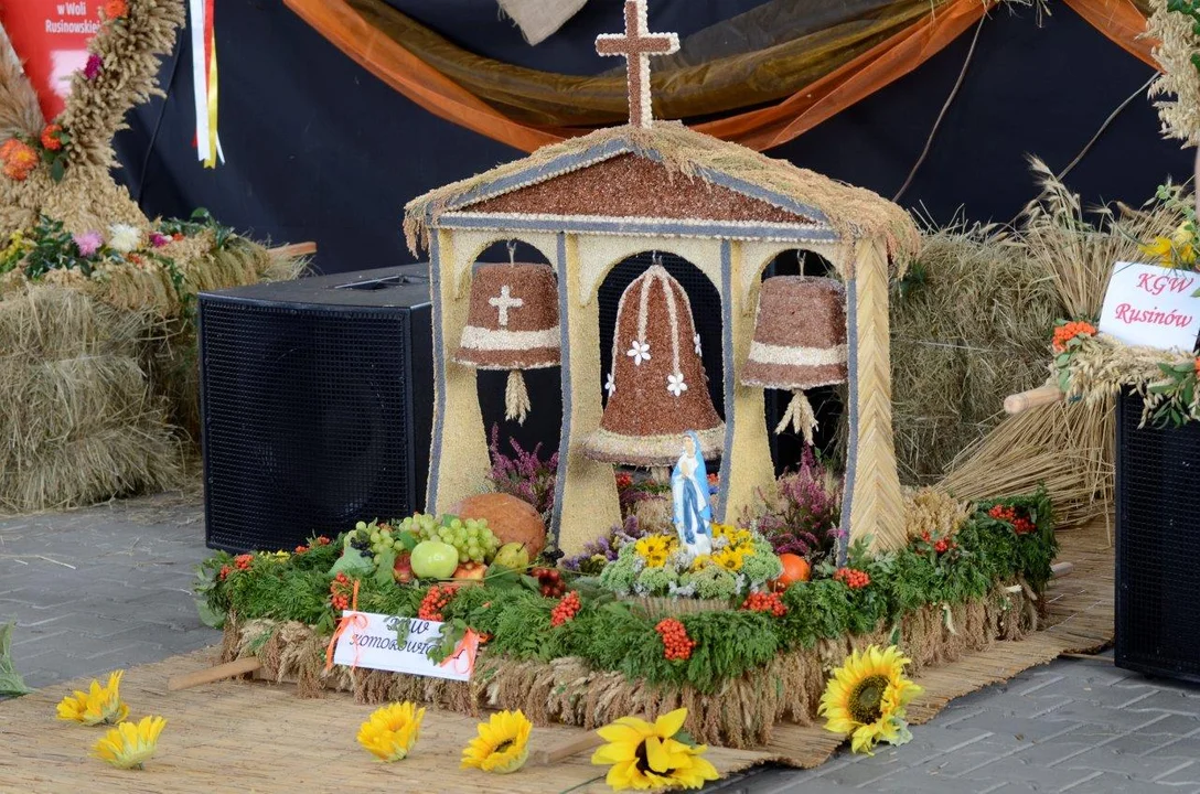 Wieńce dożynkowe ozdabiane są także kwiatami polnymi, ziarnami, warzywami i owocami.