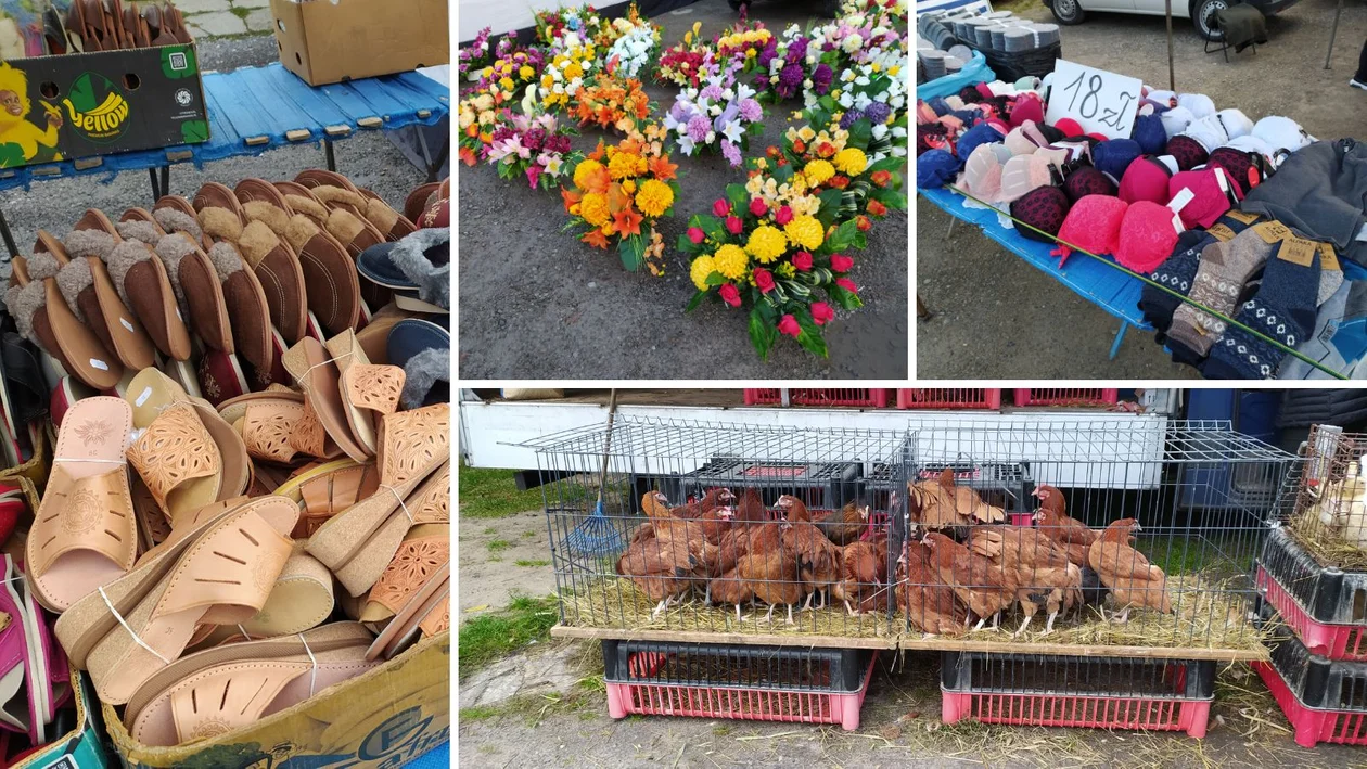 Handlarze oferują różnorodny asortyment. Wybór jest naprawdę duży i z pewnością każdy znajdzie coś dla siebie. Nie zabrakło mebli, dywanów, pościeli, ubrań, firan, obuwia, motoryzacyjnych staroci i innych przedmiotów użytku codziennego. Do kupienia są także kury nioski i kurczęta.