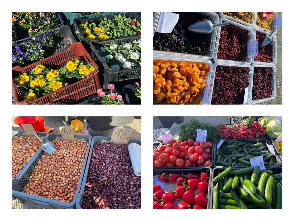 Na targu można było kupić miód, zboża, kasze, czy suszone owoce. Dla klientów dostępna była i chemia, jak i gotowe produkty typu makarony, chleb i wiele innych.