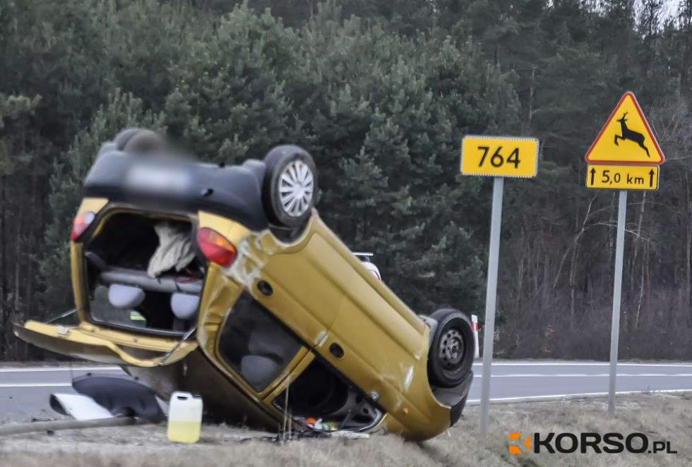 Z REGIONU: Wypadek na obwodnicy. Dachowanie Matiza - w gminie Tuszów Narodowy [FOTO]