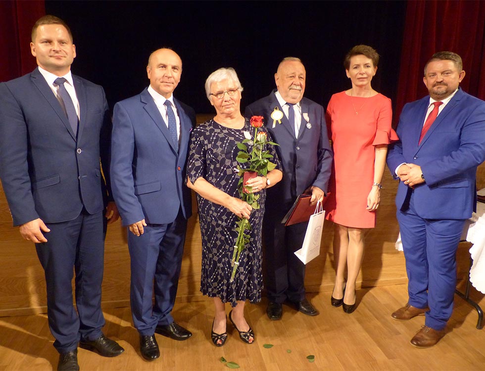 Jubilatom w poniedziałkowe popołudnie, oprócz najbliższej rodziny, życzenia i gratulacje składali: Wicestarosta Kolbuszowski Wojciech Cebula występujący w imieniu Starosty Kolbuszowskiego Józefa Kardysia, Burmistrz gminy Kolbuszowa Jan Zuba, Przewodniczy Rady Miejskiej Krzysztof Wilk oraz zastępca kierownika USC Ewa Gul-Czachor. Oprócz medali przedstawiciele samorządów wręczali małżonkom okolicznościowe życzenia, upominki oraz kwiaty. Na koniec na scenie przed jubilatami wystąpiła m.in. Katarzyna Liszcz-Starzec.
