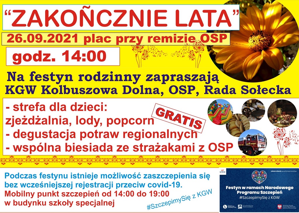 W programie dużo atrakcji: zjeżdżalnia, lody, popcorn dla dzieci, degustacja potraw regionalnych oraz wspólna biesiada ze strażakami OSP.