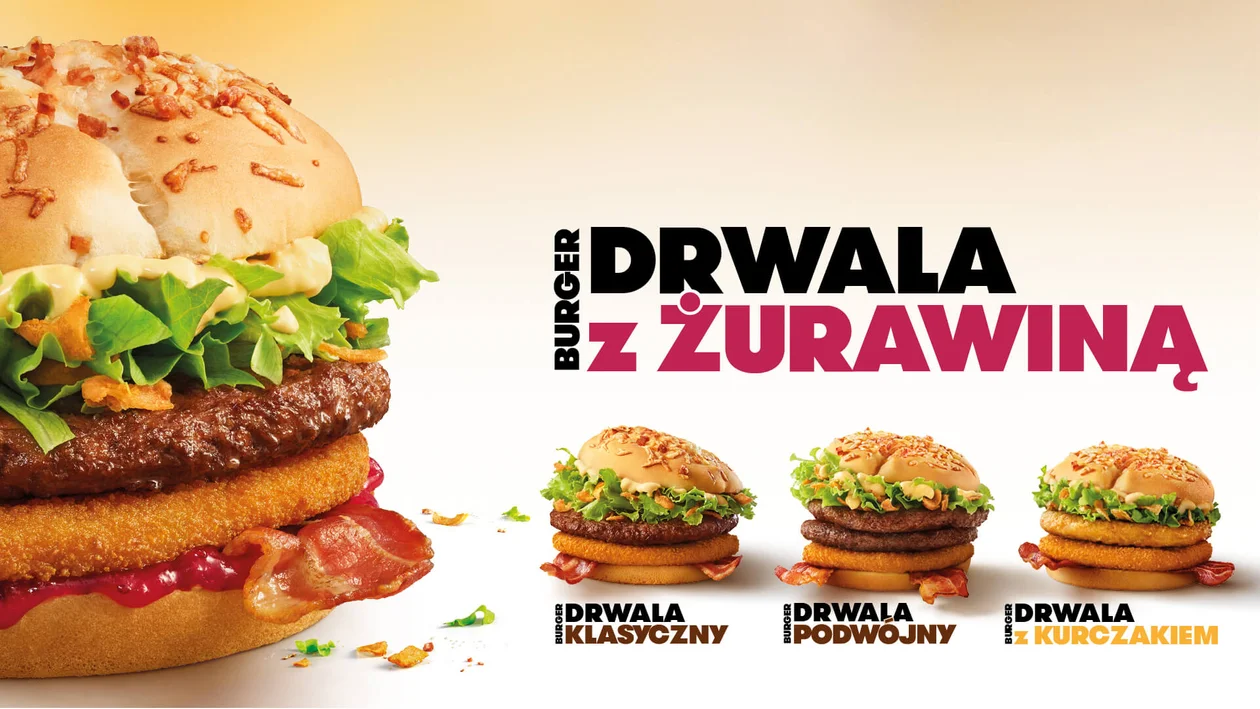 Wyśmienity kotlet wołowy, plaster panierowanego sera i chrupiący bekon. Do tego idealnie dobrane dodatki: świeża sałata, aromatyczna prażona cebulka i sos z przyprawami. Całość zamknięta w puszystej bułce z serowo-bekonową posypką - tak popularna restauracja zachęca swoich klientów do skosztowania Burgera Drwala.