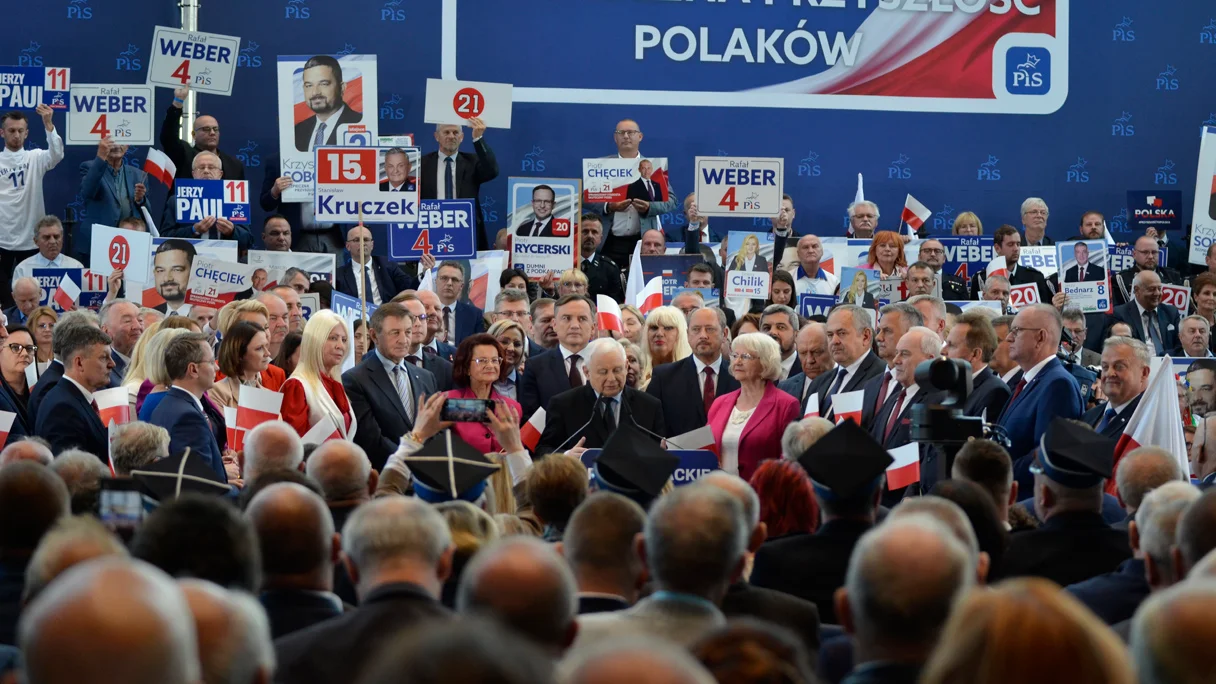 Lidera Prawa i Sprawiedliwości powitały na G2A Arenie okrzyki: „Jarosław, Jarosław!”. Sam Kaczyński rozpoczął swoje przemówienie od twierdzenia, że lider Koalicji Obywatelskiej Donald Tusk w ostatnich wystąpieniach proponuje praktycznie to samo co Prawo i Sprawiedliwość, szczególnie pod kątem bezpieczeństwa Polaków. Lider Zjednoczonej Prawicy podkreślił, że nie wierzy w polityczne obietnice swojego głównego konkurenta.