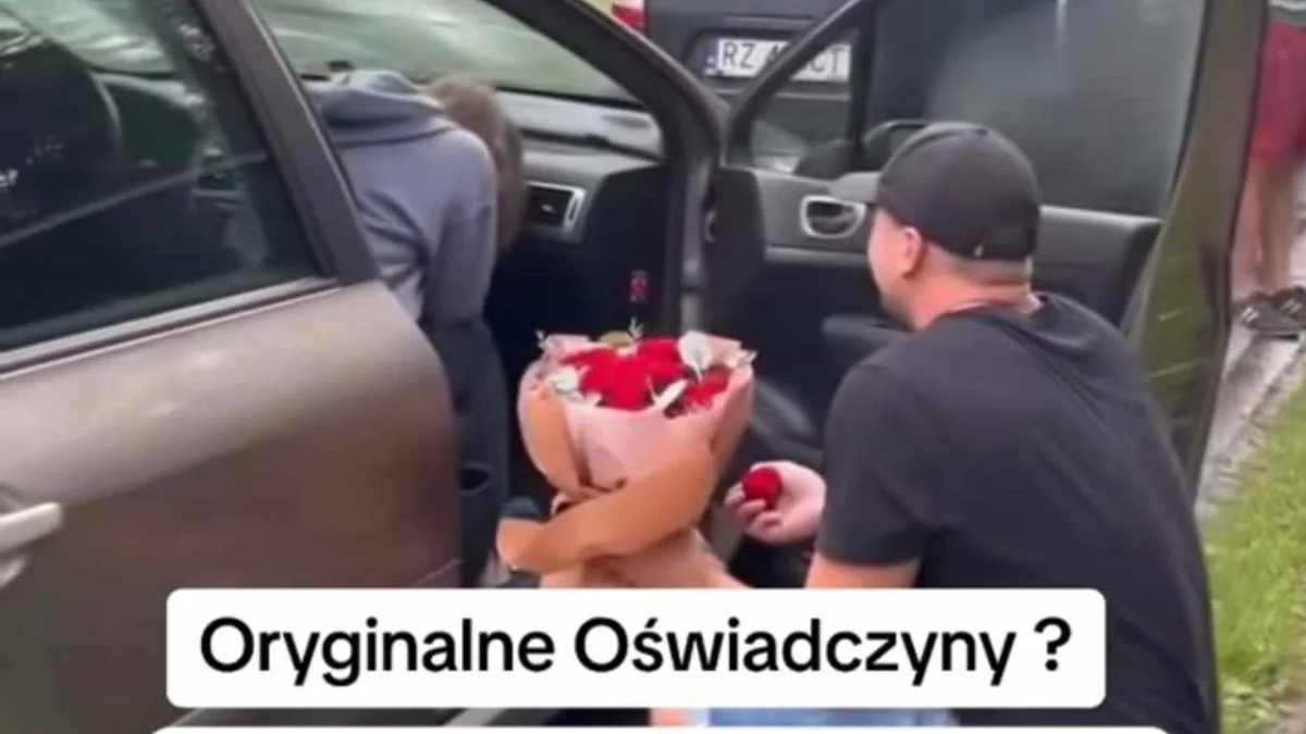 Jak poinformował nas czytelnik do nietypowych zaręczyn doszło w okolicach Mielca. Para podróżowała samochodem na tablicach rejestracyjnych RMI, a drugi samochód był na tablicach rzeszowskich. W tym dniu, kilkoro zamaskowanych mężczyzn wyskoczyło z busa i zatrzymało jadący za nimi samochód, którym podróżowała para. Metalowymi rurkami oraz łomami zdewastowali samochód i zaciągnęli chłopaka do busa. Po chwili wyszedł on do dziewczyny z bukietem kwiatów i pierścionkiem zaręczynowym. Partnerka była w szoku i nie kryła wzruszenia. Oczywiście powiedziała “TAK”! Cała akcja była wcześniej zaplanowana w tajemnicy przed dziewczyną. Był to zdecydowanie nietypowy i oryginalny pomysł na zaręczyny.