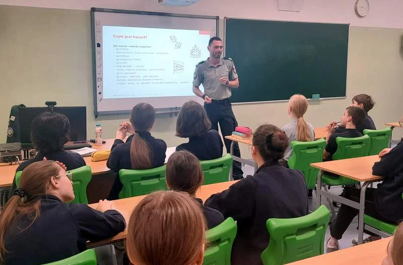 W ramach ogólnopolskiego programu "Hazard? Nie daj się wciągnąć", funkcjonariusze KAS odwiedzili ponad 150 szkół w województwie podkarpackim, w tym w Kolbuszowej i przeprowadzili zajęcia na temat przeciwdziałania uzależnieniu od hazardu.