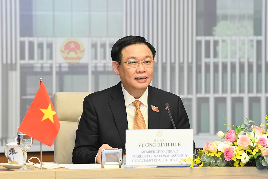 Przewodniczący Zgromadzenia Narodowego Wietnamu, będący na czele delegacji parlamentarnej Wietnamu, która odbędzie wizytę w krajach eropejskich, to pan Vuong Dinh Hue, urodzony w 1957 roku, doktorant na Uniwersytecie w Bratysławie na Słowacji, ekonomista finansowy, profesor i były wicepremier oraz były sekretarz Komitetu Partii Hanoi.