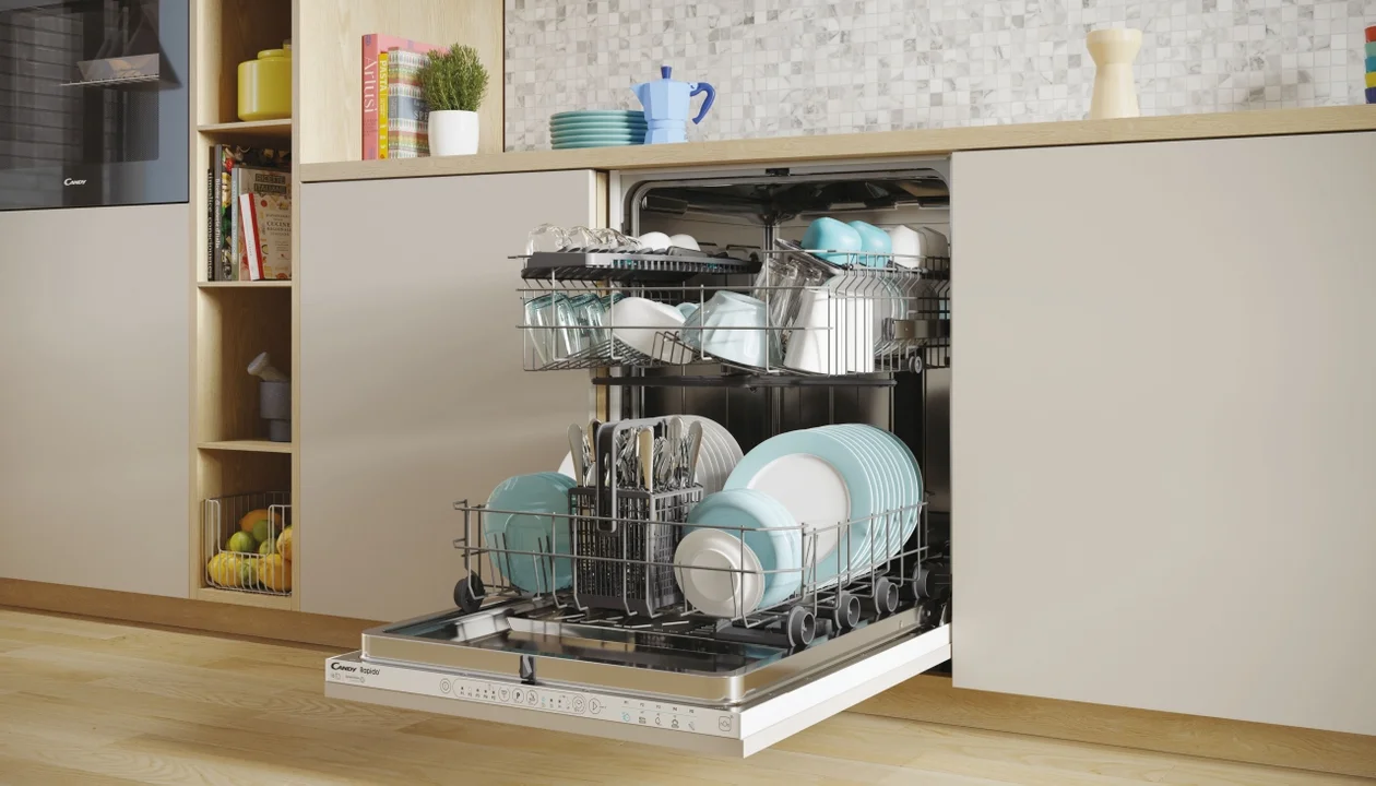 Zmywarka Candy RapidO CI 3E6L0W określana jako najlepsza w swojej klasie to kolejne urządzenie w specjalnej ofercie Candy. Posiada dużą pojemność, która jest wynikiem większego o 11% wnętrza, w porównaniu do standardowych zmywarek. Pozwala to bez problemu czyścić nawet te naczynia kuchenne o większych rozmiarach takich jak blachy z piekarnika. Z pewnością będzie nieocenionym wsparciem po każdych kuchennych rewolucjach. Dodatkowym atutem tego modelu są bardzo szybkie cykle (między innymi trwający zaledwie 49 minut), programy ekonomiczne i higieniczne przeznaczone do dezynfekcji naczyń w temperaturze 75°C. Jak większość urządzeń Candy, zmywarka RapidO CI 3E6L0W współpracuje z aplikacją hOn. Dodatkowo, w smartfonie można uruchomić funkcję Snap&Wash. Wystarczy zrobić zdjęcie wypełnionych naczyniami koszy, a automatyczne wykrywanie ilości, rodzaju i położenia naczyń, dobierze najlepsze parametry zmywania. Zmywarka Candy RapidO napędzana jest silnikiem bezszczotkowym Speed-Drive Inverter, który jest w stanie zwiększyć wydajność zmywania, przy jednoczesnym zmniejszeniu zużycia energii. Emisja dźwięku podczas pracy zmywarki nie przekracza poziomu 46 dB, zatem urządzenie będzie pracować bardzo cicho również w nocy.
