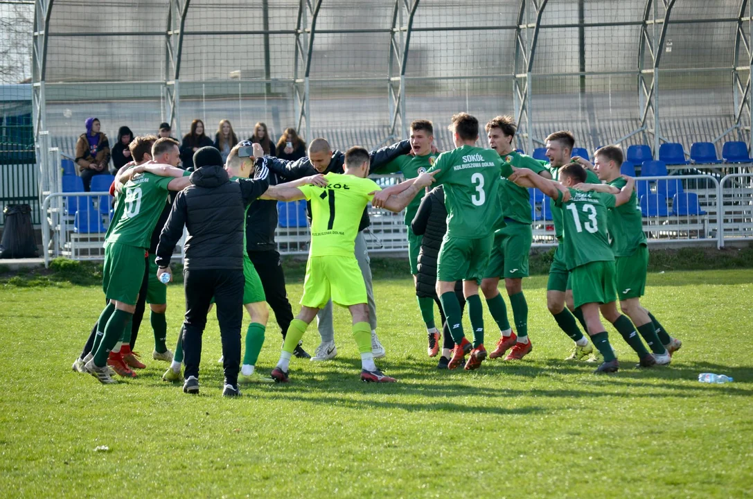 W środę, 27 kwietnia Sokół Kolbuszowa Dolna pokonała u siebie ostatnią drużynę w tabeli, Czarnych Trześń 5:0. Goście dzielnie bronili się do 33 minuty. Właśnie wtedy pierwszą bramkę dla Sokoła zdobył Dawid Skupiński.