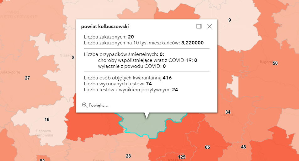 Zakażenia na Podkarpaciu według powiatów: