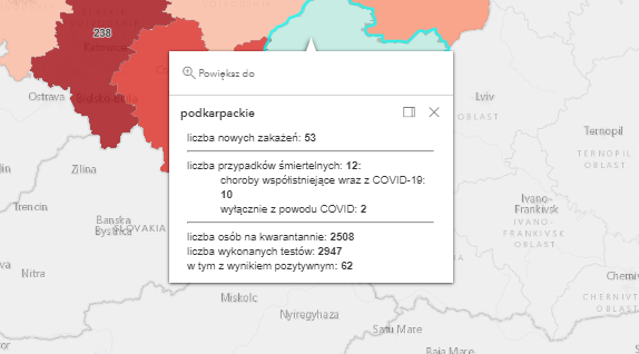 Zakażenia na Podkarpaciu według powiatów: