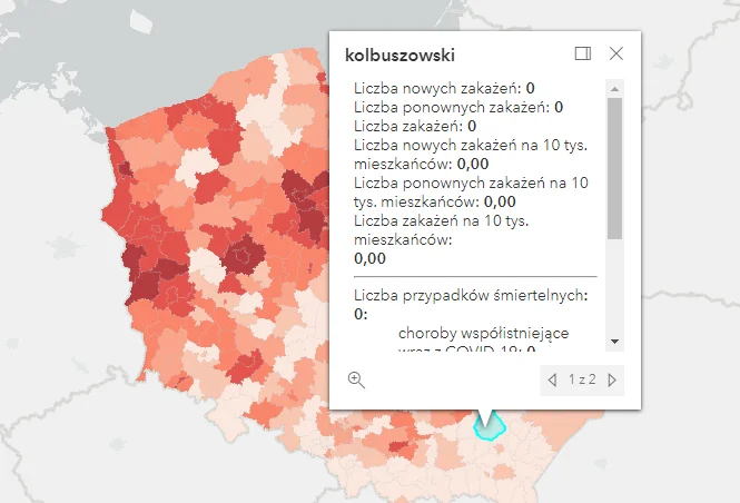 Nowe i ponowne zakażenia na Podkarpaciu według powiatów: