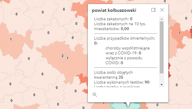Zakażenia według powiatów: