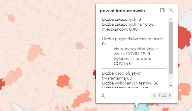 Zakażenia według powiatów: