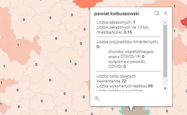 Zakażenia według powiatów: