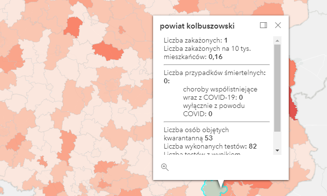 Zakażenia na terenie Podkarpacia według powiatów: