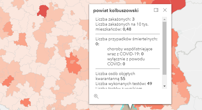 Zakażenia na terenie Podkarpacia według powiatów: