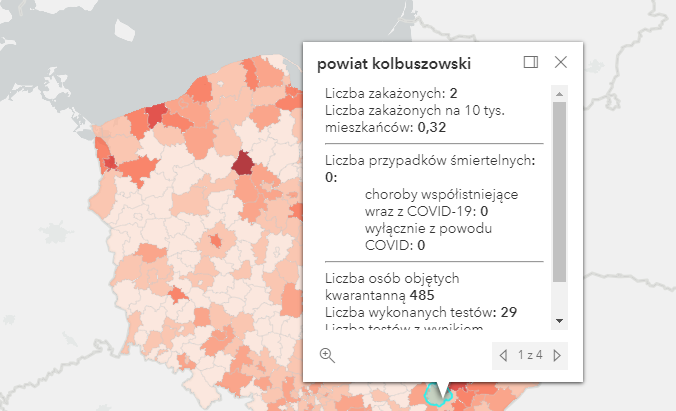 Zakażenia na terenie Podkarpacia według powiatów: