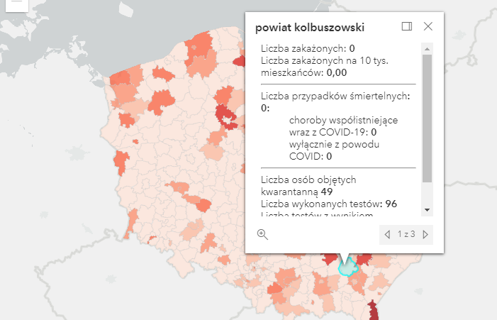 Zakażenia na Podkarpaciu w powiatach: