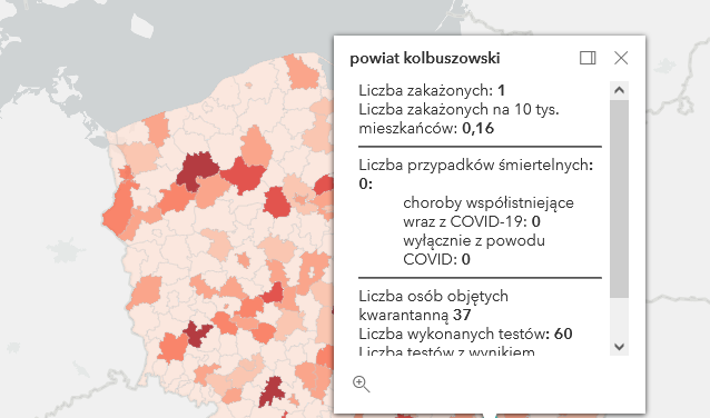Zakażenia Covid-19 dotyczą powiatów: