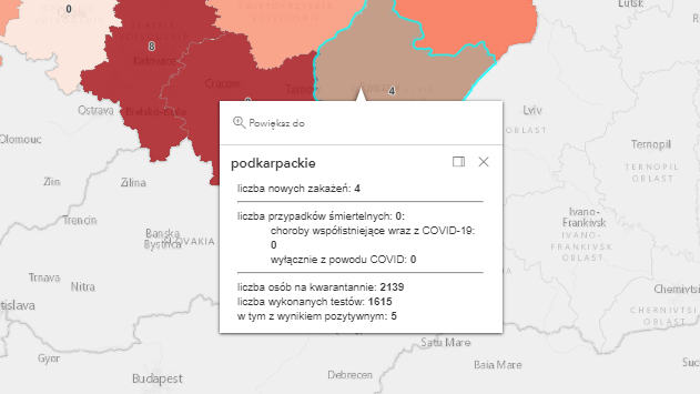 Zakażenia na Podkarpaciu według powiatów: