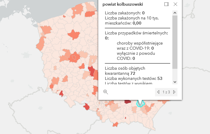 Zakażenia w powiatach na Podkarapciu: