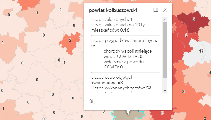 Zakażenia według powiatów: