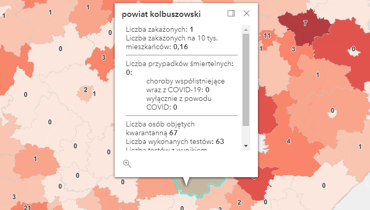 Zakażenia według powiatów: