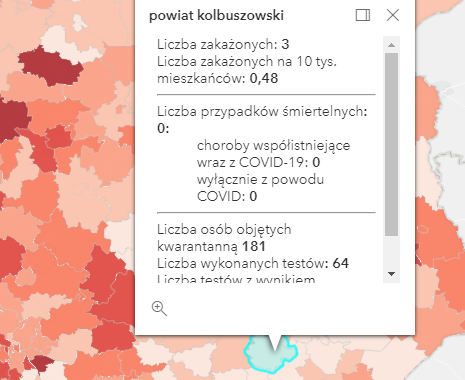 Zakażenia na terenie Podkarpacia według powiatów: