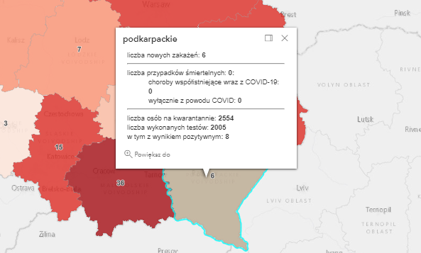 Zakażenia na Podkarpaciu według powiatów: