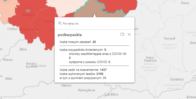 Zakażenia na Podkarpaciu według powiatów: