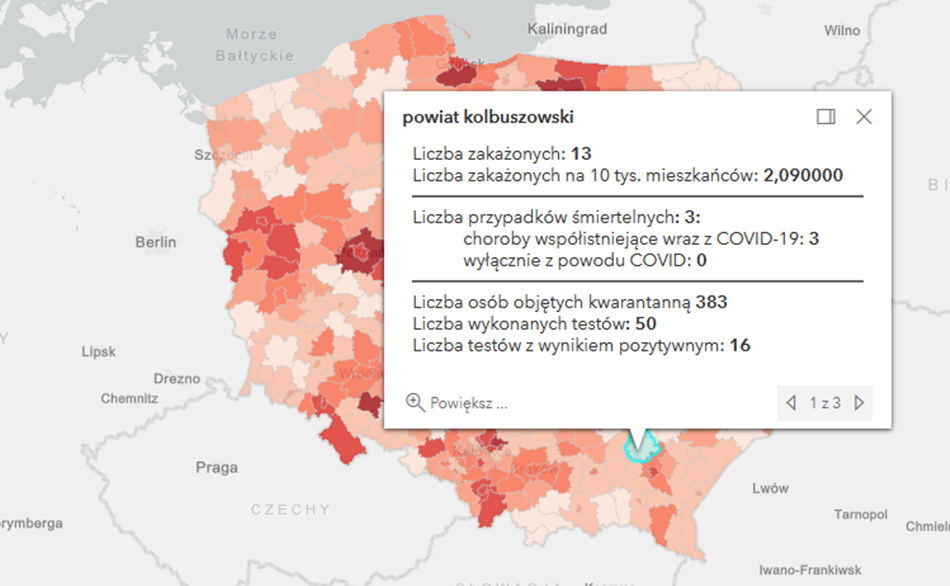 Zakażenia na terenie Podkarpacia według powiatów: