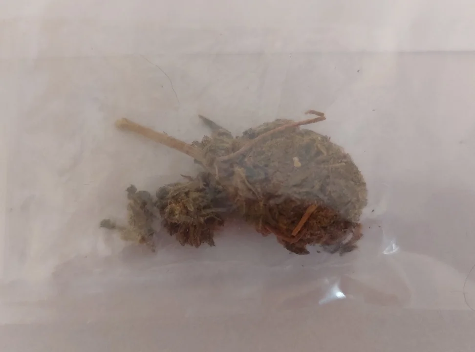 - W trakcie dalszych czynności okazało się, że wewnątrz wspomnianej saszetki znajdował się mały woreczek z zawartością suszu roślinnego. Funkcjonariusze zabezpieczyli susz i poddali go badaniu narkotestem, który wykazał obecność zabronionych substancji