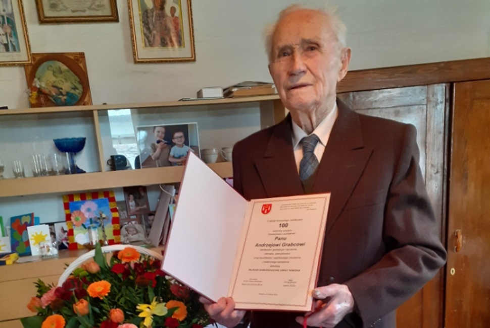 Mieszkaniec gminy Niwiska pan Andrzej Grabiec urodził się 100 lat temu - 23 marca 1921 roku w domu rodzinnym w Siedlance, jako syn Józefa i Józefy Zielińskiej. Od najmłodszych lat, jako najstarsze dziecko z kilkorga rodzeństwa musiał wykonywać ciężkie prace w gospodarstwie domowym i jednocześnie uczęszczał do istniejącej już we wsi szkoły podstawowej.