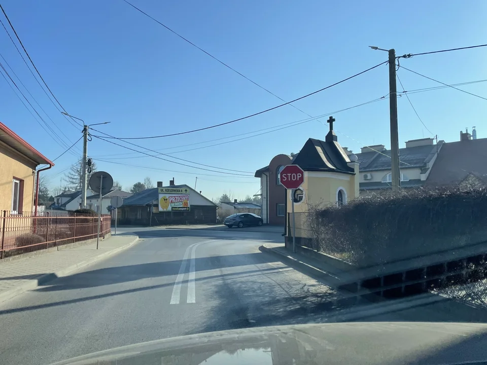 - Przy zjeździe w ul. Krakowską z ul. Piłsudskiego zamontowano znak drogowy zakaz wjazdu samochodów powyżej 3,5 tony, natomiast od wjazdu z ul. Polnej w ul. Krakowską takiego znaku nie zamontowano