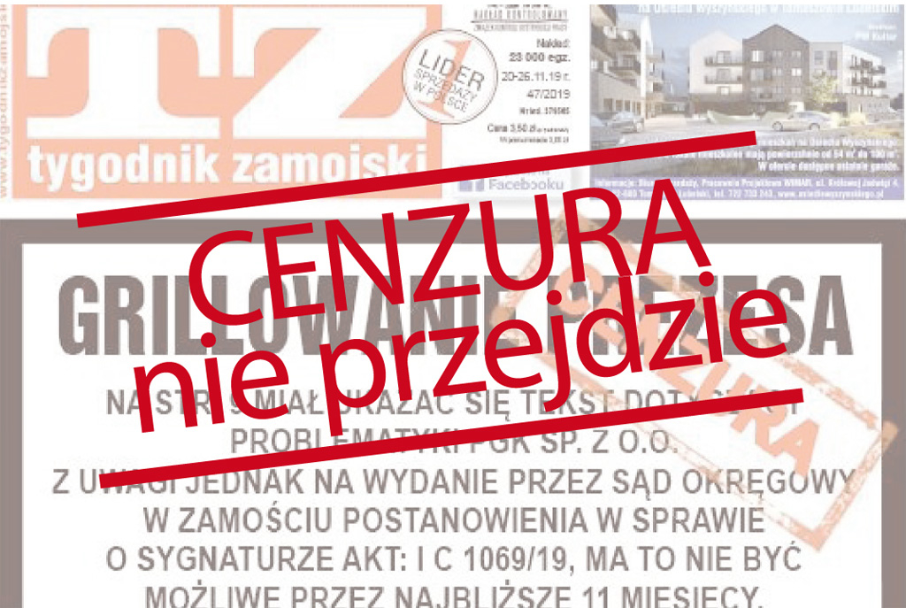 W listopadzie w Zamościu doszło do wstrząsającej sytuacji: Sąd Okręgowy uznał, że ważniejsze jest dobre samopoczucie osób publicznych i miejskiej spółki, niż prawo mieszkańców do informacji. Nałożył na Tygodnik Zamojski 11-miesięczny zakaz publikacji na temat działalności Przedsiębiorstwa Gospodarki Komunalnej w tym mieście. Nakazał także usunięcie dotychczas opublikowanych tekstów ze strony internetowej.