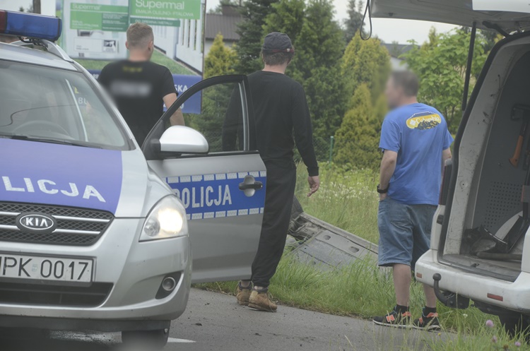 Samochód osobowy dachował w przydrożnym rowie w Kolbuszowej Dolnej.