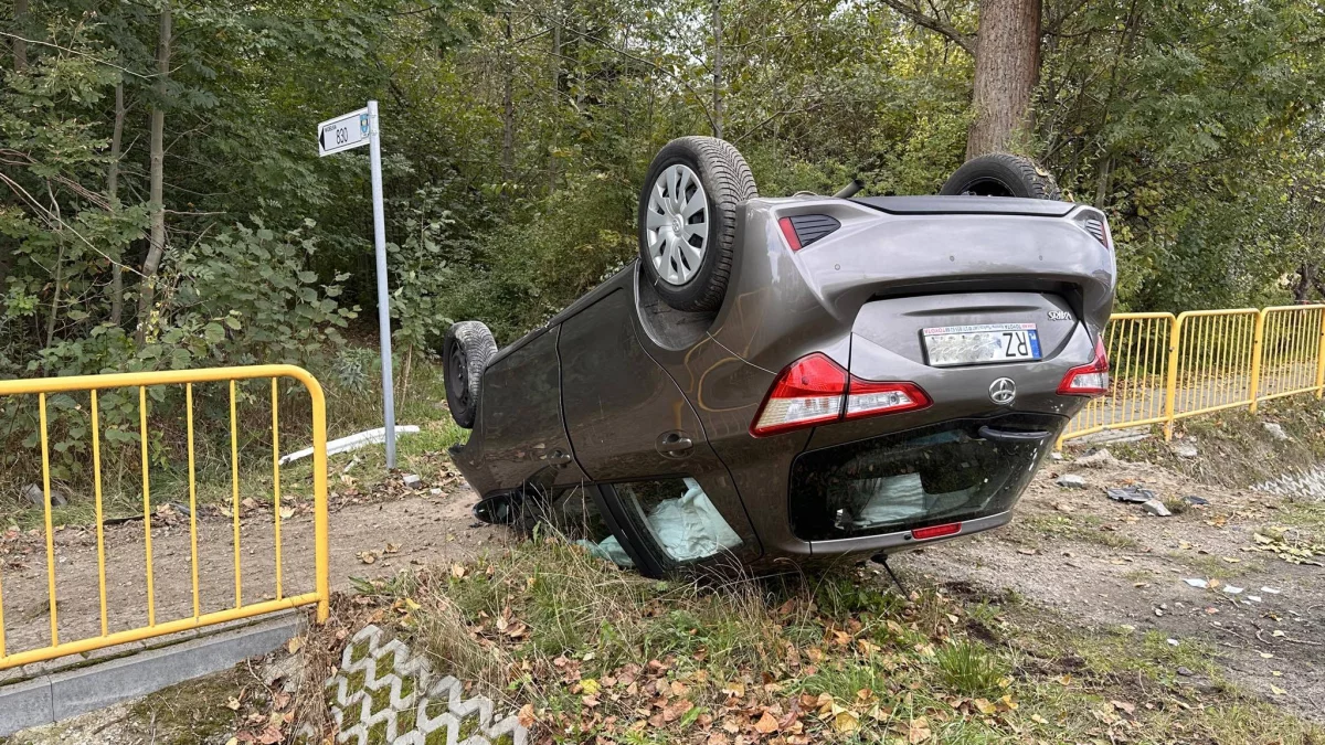 Na miejscu wprowadzono ruch wahadłowy. Policja prowadzi czynności wyjaśniające przyczyny i okoliczności wypadku, a służby przygotowują się do usunięcia pojazdu z pobocza, aby przywrócić normalny ruch na drodze.