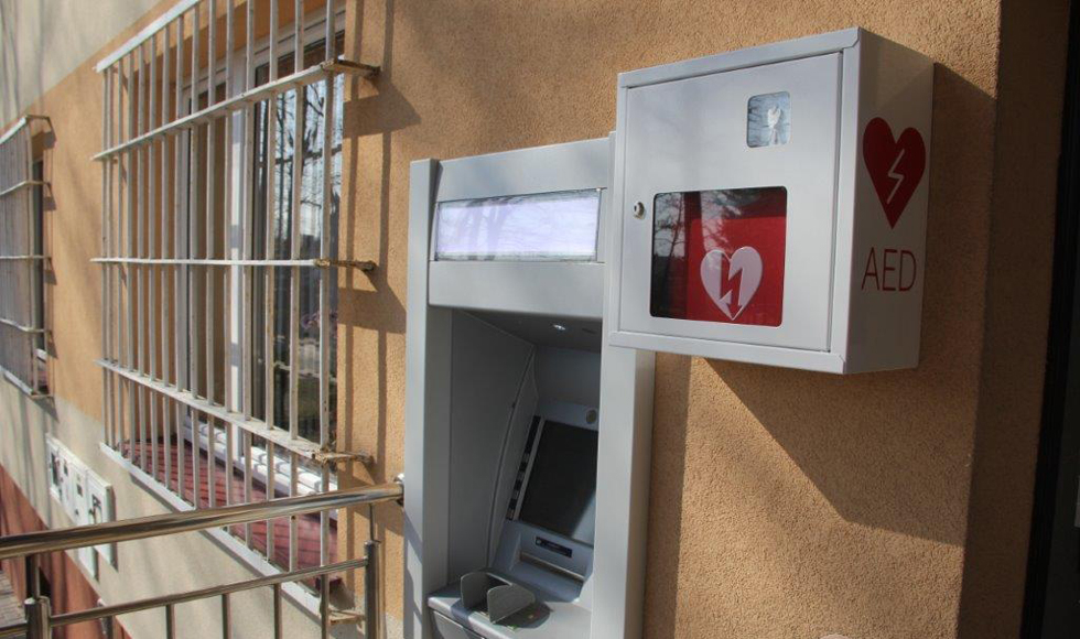 Urządzenie zlokalizowane jest obok bankomatu.