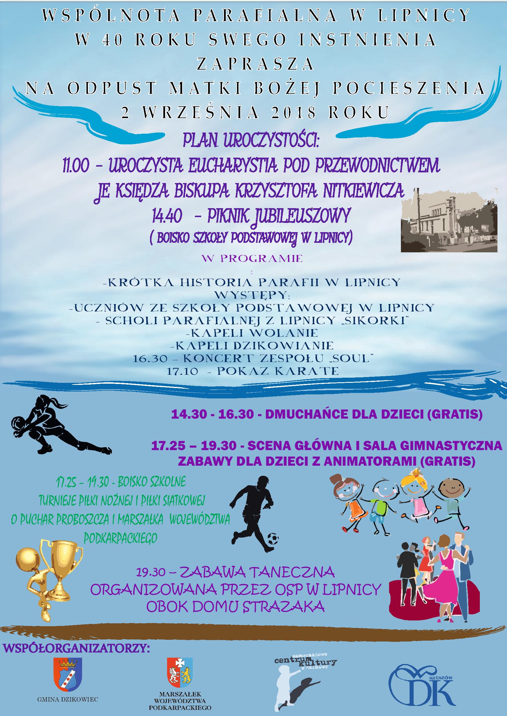 Uroczystości rozpoczną się w niedzielę 2 września mszą świętą o godz. 11. w kościele parafialnym w Lipnicy.