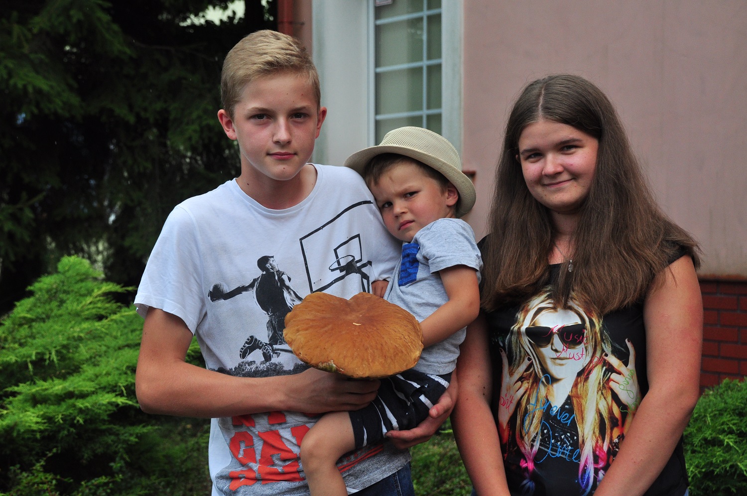 W czasie rodzinnego grzybobrania dzieciaki, Michał, Mariola i Marcin natknęli się na wyjątkowo pięknego, wyrośniętego prawdziwka. Ile waży rekordowy grzybek? Waga pokazała 0,9 kilograma.