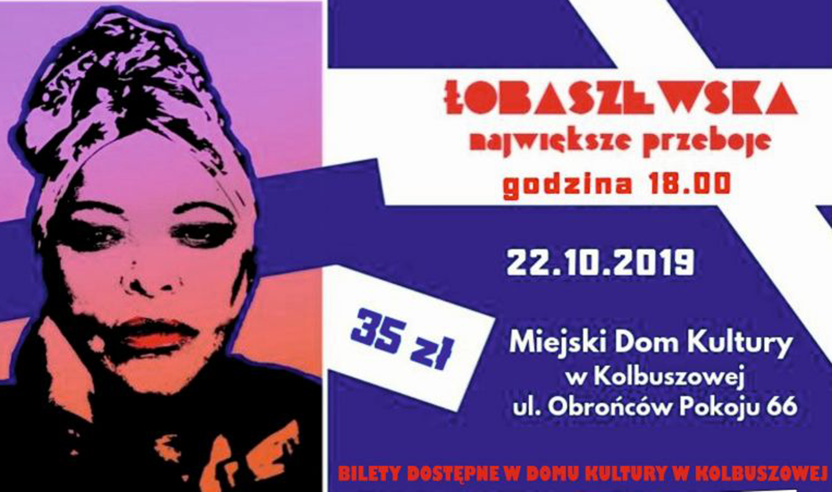 We wtorek, o godz. 18, Grażyna Łobaszewska wystąpi z koncertem. To wydarzenie kulturalne, podczas którego każdy słuchacz znajdzie coś dla siebie. Artystka zaśpiewa znane utwory oprawione w nowe, ciekawe aranżacje. Bilety w cenie 35 zł dostępne są w kolbuszowskim MDK.