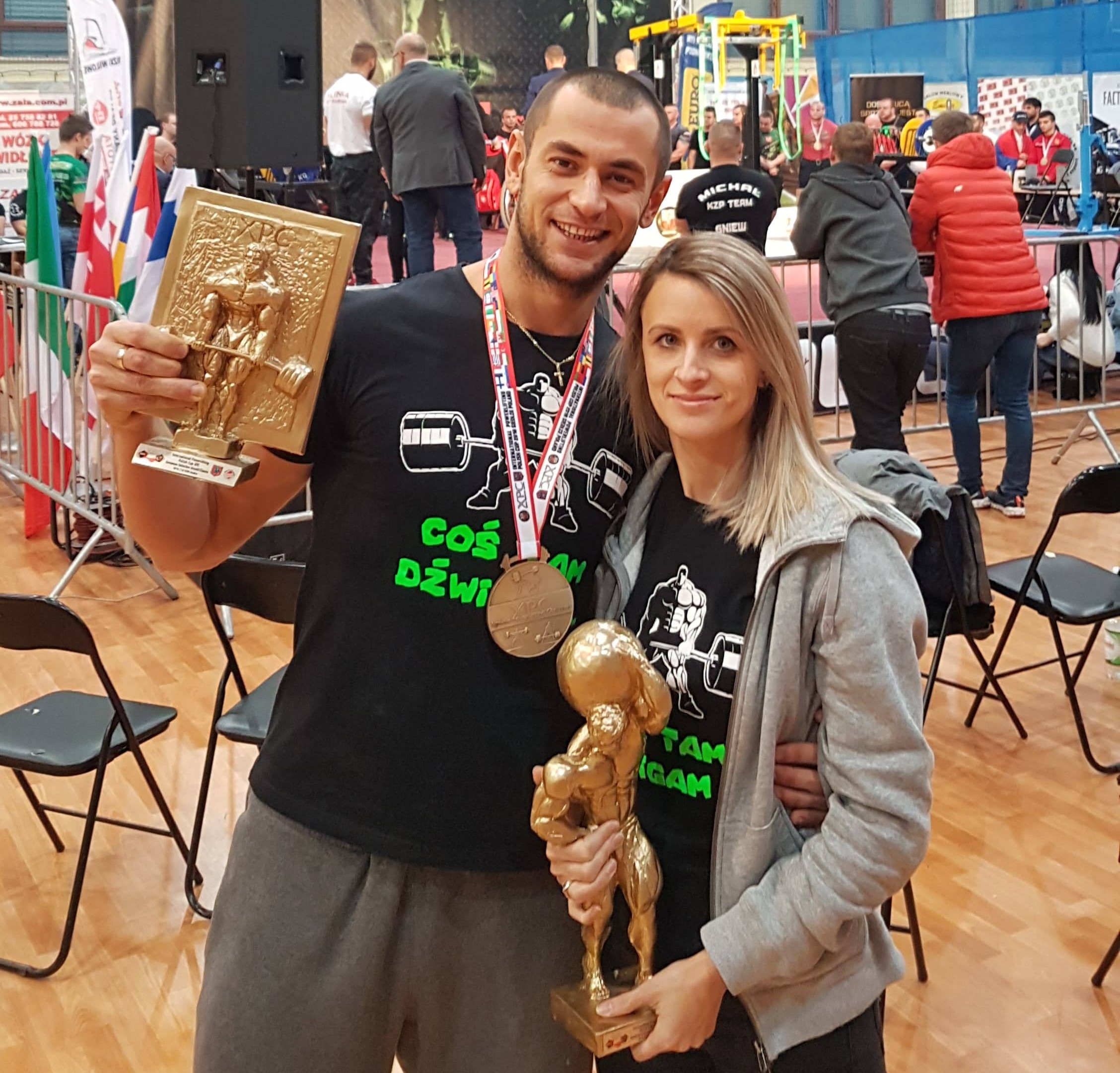Mariusz zawody zaczął w przysiadach od 210 kg, następnie poprzez 230 kg, by w ostatnim podejściu zaliczyć 252,5 kg, co jest jego nowym rekordem życiowym. - Byłem przygotowany na wynik w okolicach 270 kg, lecz od jakiegoś czasu mam problem z łokciem i borykam się znowu z kolanem – zaznaczał Brito. Kolejną konkurencją było wyciskanie sztangi leżąc. Mariusz zaczął ten bój od 140 kg, kolejnym ciężarem było 155 kg, lecz przez ból w łokciu nie zostało zaliczone. W trzeciej próbie zawodnik wyłączył ból i zaliczył bez problemu 155 kg. Ostatnią konkurencją był martwy ciąg. To specjalność Mariusza. Zaczął lekko 255 kg w pierwszym podejściu, następnie zrobił ogromny przeskok na 282,5, dzięki czemu poprawił swój rekord życiowy i ustanowił nowy rekord Europy w martwym ciągu. Na ostatnie podejście Mariusz zadeklarował na sztangę 300 kg. Ciężar ten został podniesiony, lecz przez drobny błąd techniczny sędziowie nie zaliczyli tego podejścia. - Kiedyś marzyłem o takim ciężarze, a teraz go podniosłem – oceniał wzruszony Mariusz. Łączny wynik w trójboju trenera Studia Mocy to 690 kg, co jest również jego rekordem życiowym. Dzięki takiemu wynikowi Mariusz został zwycięzcą kategorii do 82,5 kg oraz zajął drugie miejsce w gronie wszystkich zawodników, bez podziału wagowego i wiekowego, ustępując miejsca jedynie zawodnikowi z Irlandii. Co najważniejsze, Mariusz, osiągając taki rezultat, tym samym zakwalifikował się do Arnold Classic XPC World 2019. - Trójbój siłowy to sprawdzian czystej siły zawodnika. Konkurencja, która składa się z trzech bojów (przysiadu ze sztangą na barkach, wyciskania sztangi leżąc na ławeczce płaskiej oraz martwego ciągu), ma sprawdzić siłę wszystkich najważniejszych grup mięśniowych uczestnika. Wbrew pozorom można uprawiać tę dyscyplinę w każdym wieku, szczególnie popularna jest w krajach byłego bloku wschodniego – podkreśla Brito.