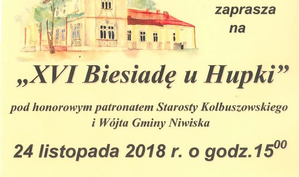 24 listopada odbędzie się "Biesiada u Hupki". W planach degustacja swojskiego jadła oraz kiermasz rękodzieła artystycznego.