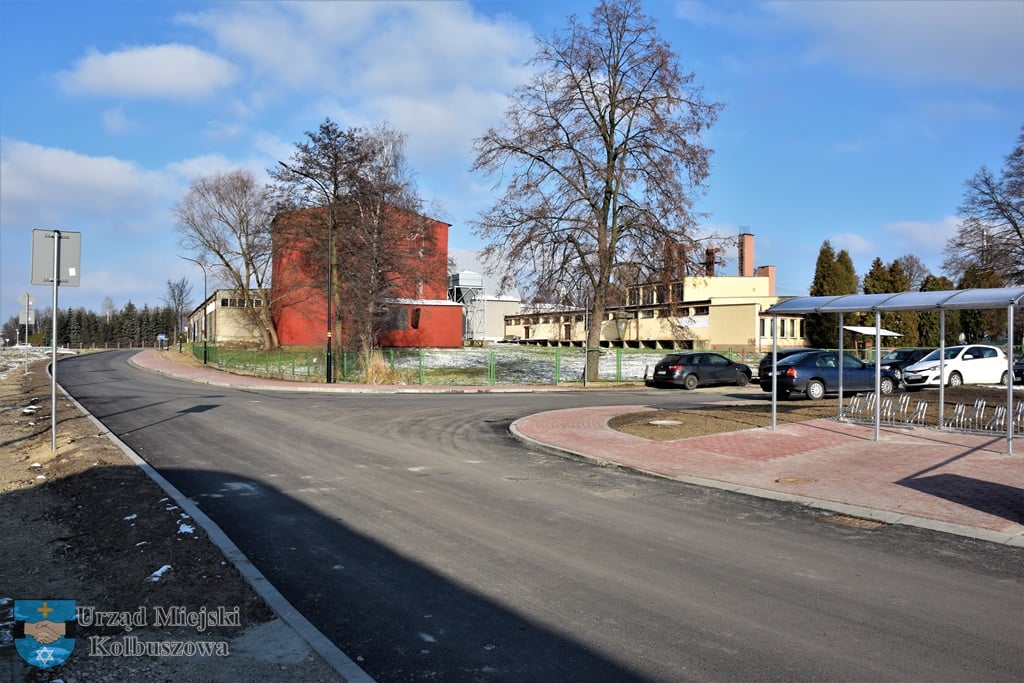 - Ponadto przebudowano skrzyżowanie z ul. Żytnią w celu poprawy jego geometrii. Za skrzyżowaniem powstały miejsca postojowe dla samochodów osobowych oraz stanęła zadaszona wiata ze stojakami na rowery