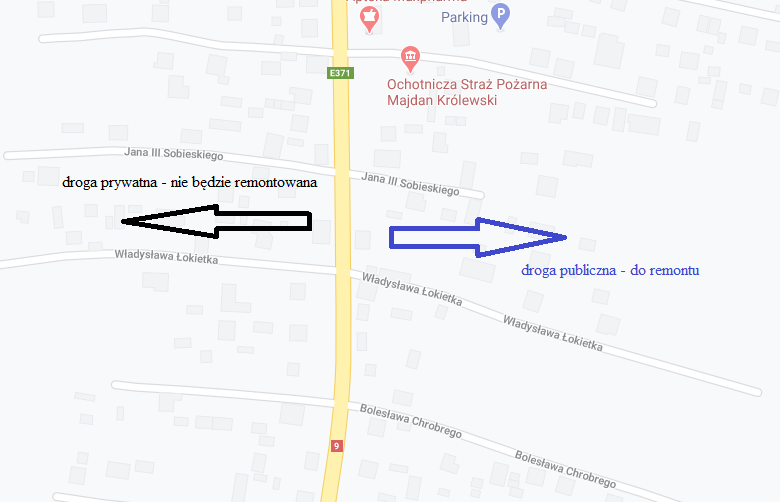 Ulica Łokietka w Majdanie Królewskim składa się z dwóch części. Przecina ją droga krajowa nr 9. Odcinek po prawej stronie (jadąc w kierunku Nowe Dęby) zostanie wyremontowany. Mowa o 195 metrach. Ten po lewej już nie. Powód? Strona zachodnia ul. Łokietka jest drogą prywatną.