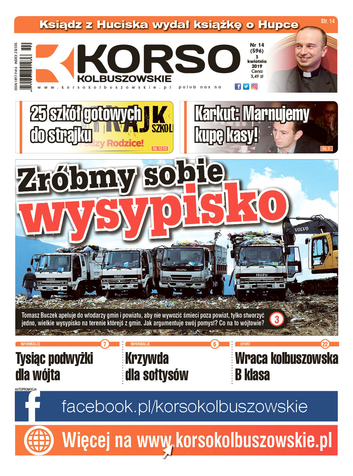 Korso Kolbuszowskie - nr 14/2019 Opublikowano: wtorek, 2 kwi 2019 08:30 Autor: Red.Udostępnij na:FacebookTwitterWIADOMOŚCINumer numer tygodnika Korso Kolbuszowskie od środy, 3 kwietnia, w kioskach. Polecane artykuły: Nowy numer Korso Kolbuszowskie 12/2026Sportowcy i trener wyróżnieni przez BurmistrzaByły gracz Sokoła ma nowy klubWidmo odcięcia wody. Gmina i wójt nie zamierzają ryzykowaćZmarli 2026. Lista mieszkańców powiatu kolbuszowskiego którzy odeszli [NAZWISKA]Czy to koniec Straży Miejskiej w Kolbuszowej? Liczby nie pozostawiają złudzeńUdostępnij na:FacebookTwitterwróć na stronę głównąZALOGUJ SIĘ Twoje komentarze będą wyróżnione oraz uzyskasz dostęp do materiałów PREMIUMe-mailhasło Zapomniałeś hasła? ODZYSKAJ JE Nie masz konta? ZAREJESTRUJ SIĘ BEZPŁATNIE