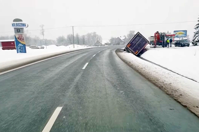 Wczoraj (środa, 13 stycznia) w godzinach wieczornych tir z naczepą wpadł do przydrożnego rowu przy DK9. Zdarzenia miało miejsce między Kolbuszową Dolną, a Zarębkami, obok domu weselnego.