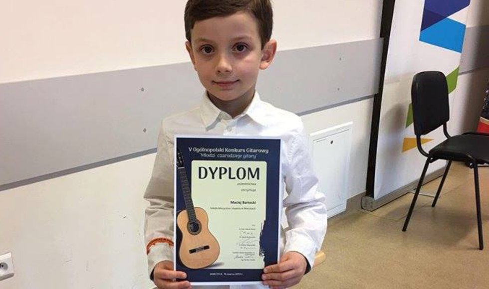 Maciuś Bartecki zdobył nagrodę w V Ogólnopolskim Konkursie Gitarowym "Młodzi czarodzieje gitary", który odbył się w piątek 16 marca w Dobczycach (woj. małopolskie).