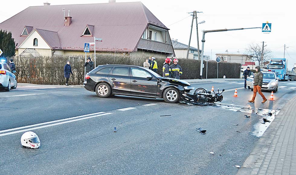 Do wypadku doszło w piątek (5 stycznia) około godz. 15 w Majdanie Królewskim, na drodze krajowej nr 9 (przy zjeździe z drogi krajowej na drogę wojewódzką na Baranów Sandomierski). Ze wstępnych okoliczności wynika, że kierujący audi, 30-letni mieszkaniec powiatu kolbuszowskiego, wyjeżdżając z drogi podporządkowanej, nie ustąpił pierwszeństwa motocykliście, który jechał krajową "dziewiątką". - W wyniku zderzenia 35-letni kierowca jednośladu trafił do szpitala. Badanie stanu trzeźwości wykazało, że mieszkaniec powiatu tarnobrzeskiego miał 1,92 promila alkoholu w organizmie - informuje Jolanta Skubisz - Tęcza, oficer prasowy Komendy Powiatowej Policji w Kolbuszowej. - Kierowca audi był trzeźwy, nie odniósł obrażeń - dodaje przedstawicielka kolbuszowskiej komendy.